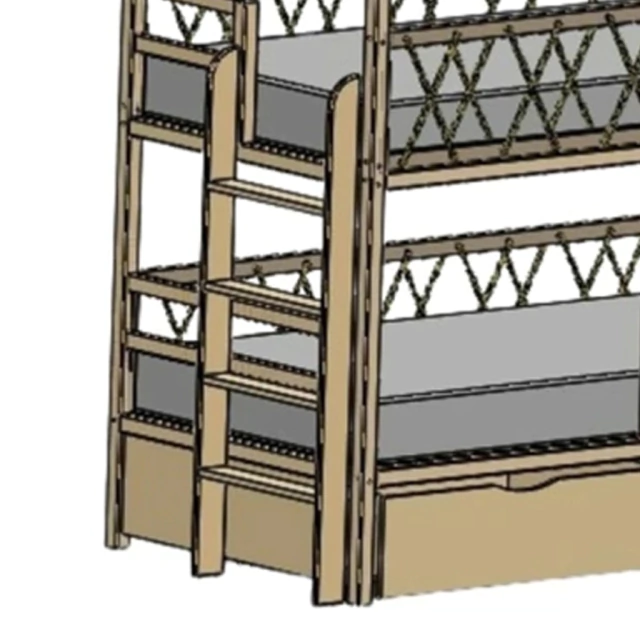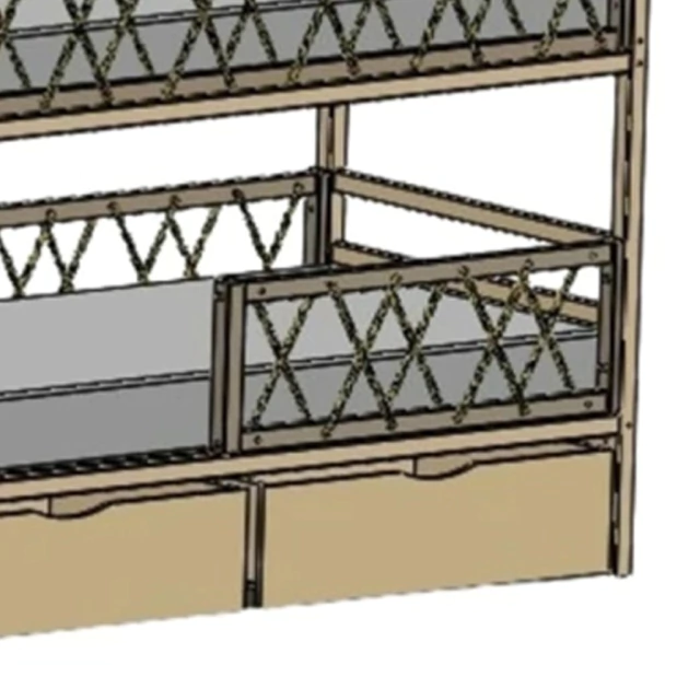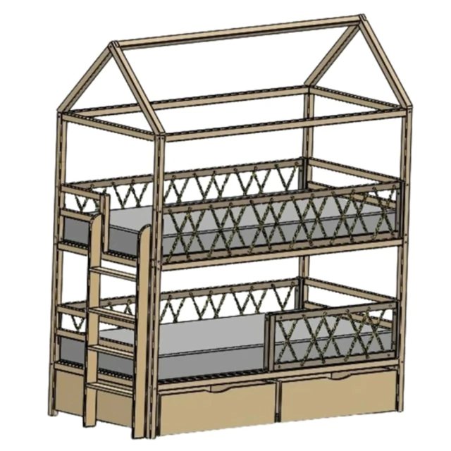 Trabalhamos com diferentes modelos de estrutura e proteção e podem ser combinadas para fazer um projeto único e totalmente personalizado para você. Este modelo de Beliche infantil, possui estrutura de Casinha e proteções com corda, tanto na parte inferior como superior. Outro diferencial deste projeto é que possui gavetas para ajudar na organização e também otimizar o espaço do quarto.