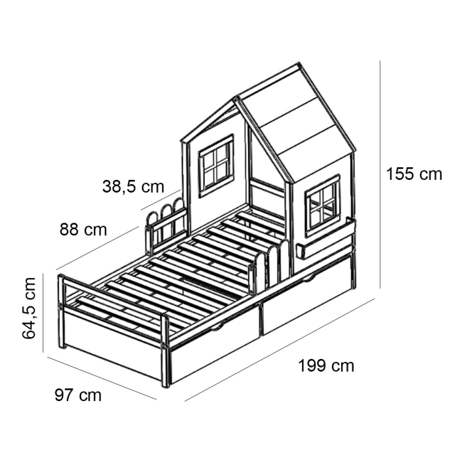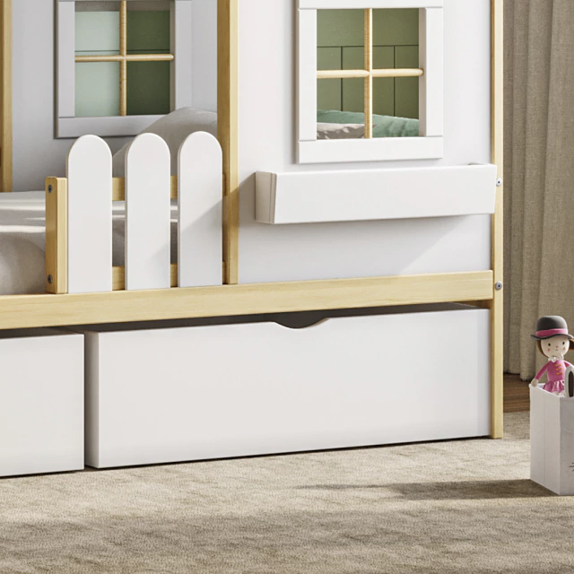 A Cama Mariana é puro encanto! Com design em forma de casinha e detalhes em madeira de Pinus, ela transforma qualquer quarto em um refúgio mágico, onde a beleza e a delicadeza se encontram em cada detalhe. Além de linda, é funcional: os dois baús com rodízios de silicone deslizam com leveza, tornando a organização prática e divertida. Ideal para manter tudo em ordem sem abrir mão da estética e do aconchego. Crie memórias inesquecíveis com um ambiente que abraça, inspira e cresce junto com seu pequeno. Beleza que encanta. Funcionalidade que transforma.